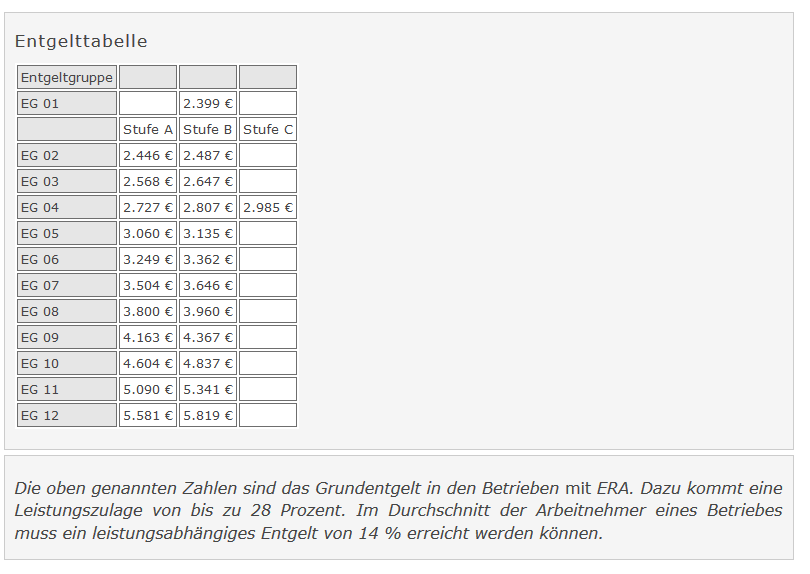 Eine übersicht der bruttolöhne gibt es unter era tabelle als pdf.